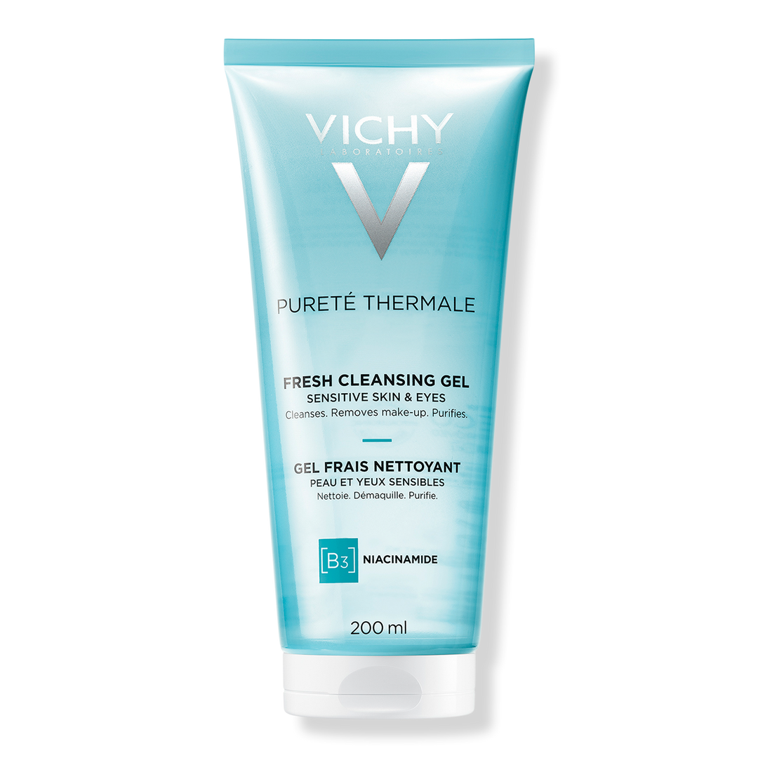 Vichy Pureté Thermale Fresh Cleansing Gel is a gel cleanser formulated with Niacinamide to cleanse impurities and makeup from skin without overdrying or tightness. Dermatologist and ophthalmologist tested, suitable for all skin types.