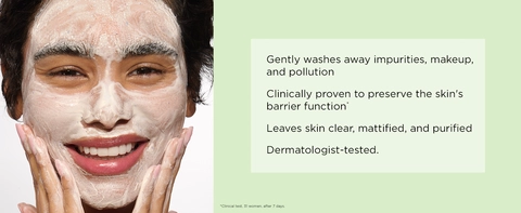 - Organic Moringa* extract targets pollutants, while preserving skin’s natural moisture balance