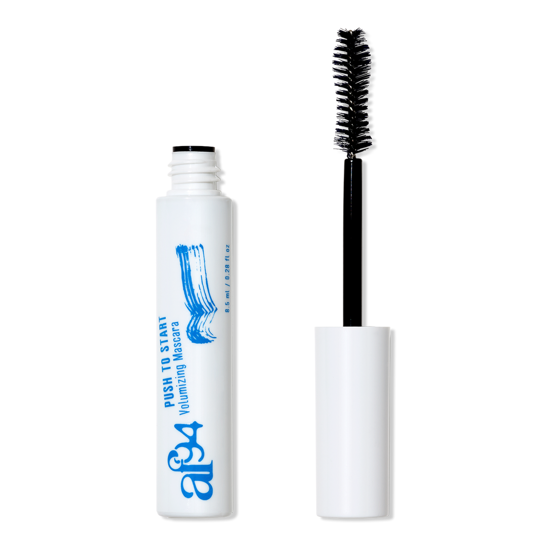 Take lashes to next-level lengths with af94's holy-grail Push To Start Volumizing Mascara, available in classic black + three electric, ultra-pigmented hues.