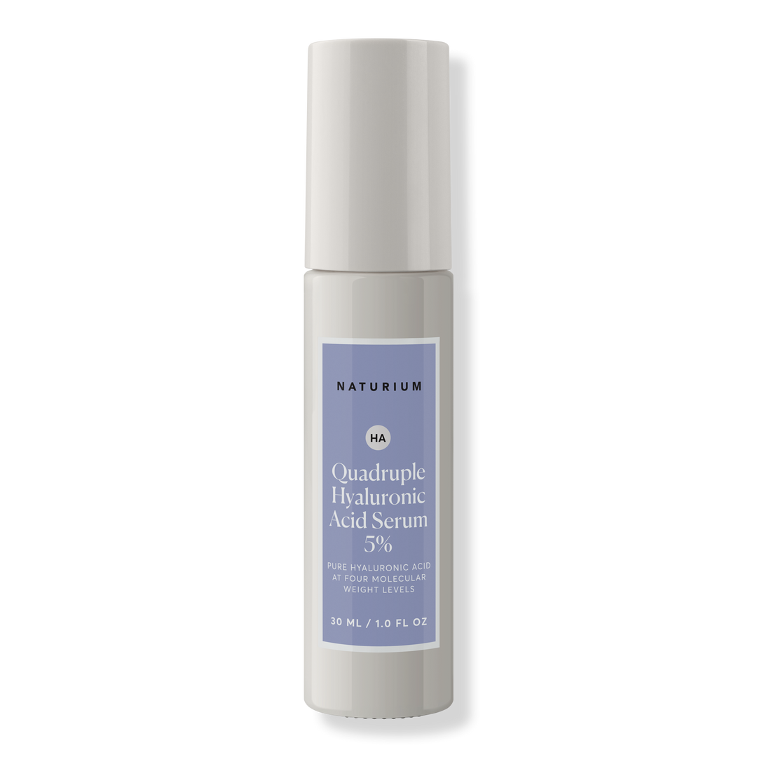 Naturium's Quadruple Hyaluronic Acid Serum 5% combines very low, medium and high molecular weight pure hyaluronic acid to hydrate and leave skin looking - and feeling - plump and supple.