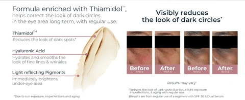 - Formula with Thiamidol helps correct the look of dark circles in the eye area