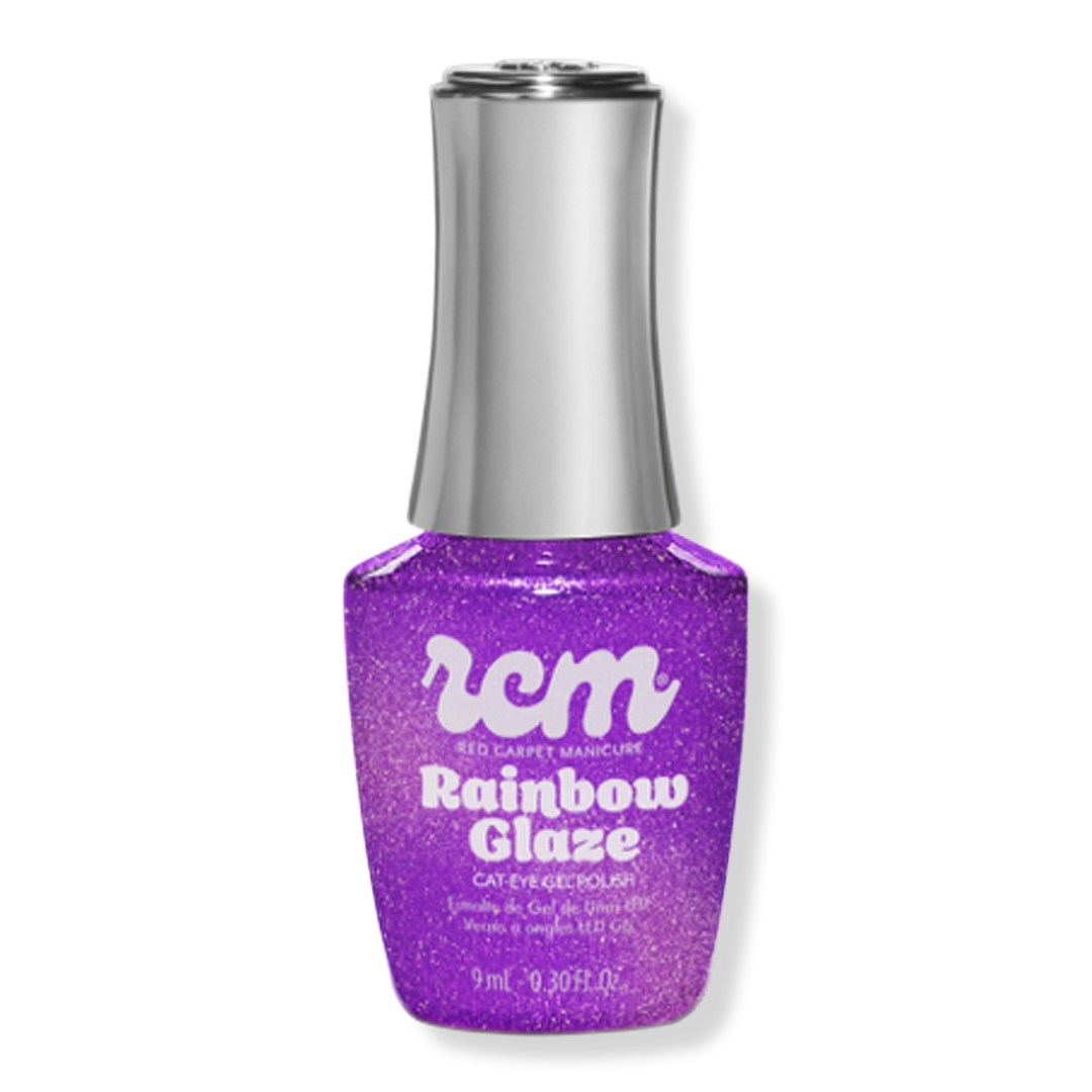 Prep nails for gel polish application. Apply RCM gel base coat and cure. Apply a dark gel polish shade of choice and cure. Apply Cat-Eye color of choice and cure for 30 second. Apply a second coat and magnetize to create desired design. Apply RCM gel top coat and cure. Cleanse with a nail wipe and purify to remove the tacky layer.