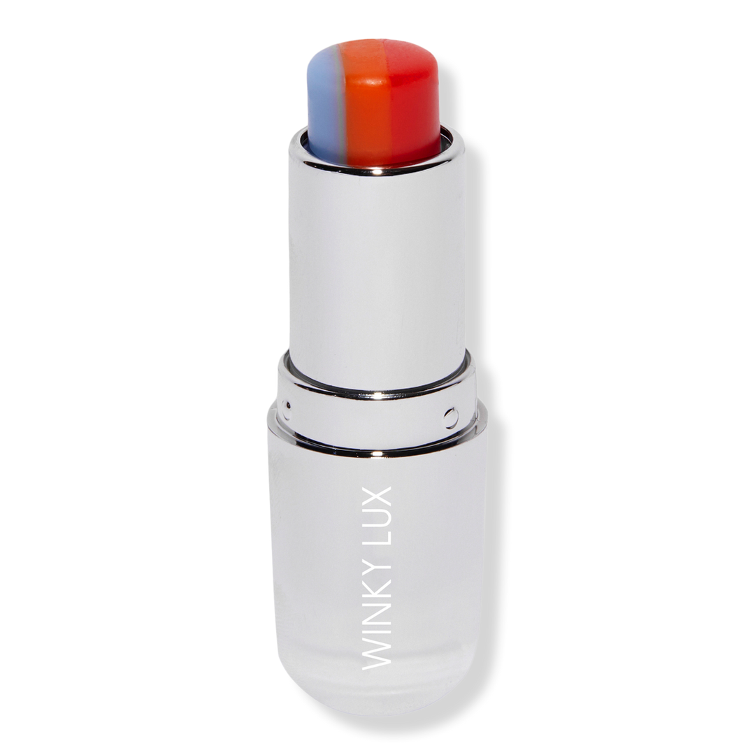 Tinted lip balm meets pH technology for the ultimate hybrid. Winky Lux's Rainbow pH Tinted Lip Balm features red and orange stripes that are tinted, while the blue stripe reacts to your lips’ natural pH levels for a cherry pink finish.