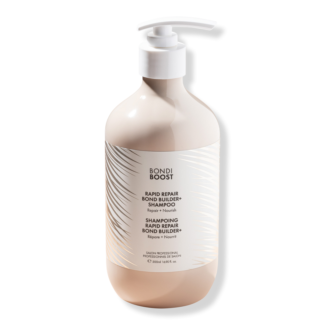 BondiBoost's natural, sulfate-free strengthening Rapid Repair Bond Builder+ Shampoo is clinically proven to reverse hair damage and mend split ends for soft, shiny, healthier strands.