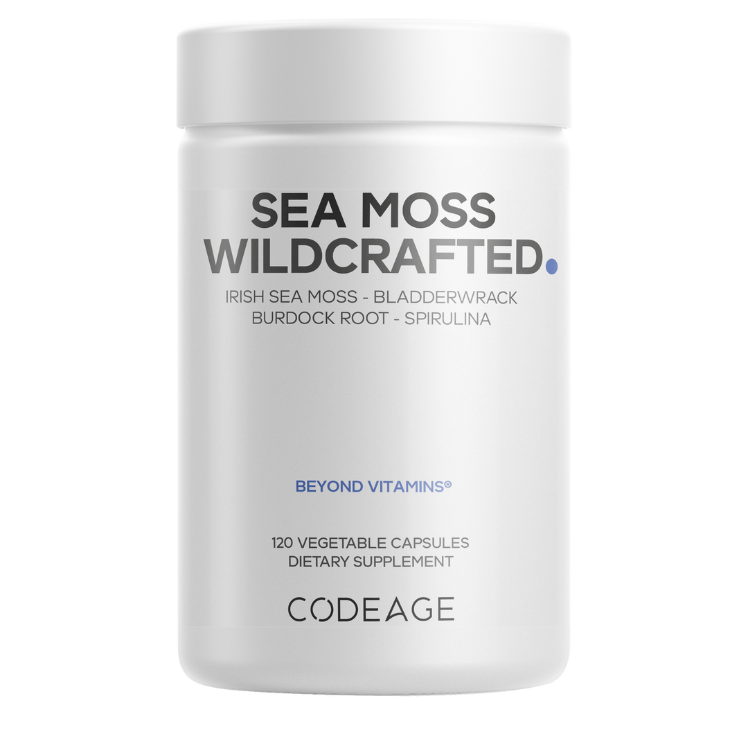 - Codeage Sea Moss Wildcrafted supplement offers 500 mg per serving of raw wildcrafted Irish sea moss paired with wildcrafted bladderwrack and 400 mg of raw wildcrafted burdock root per serving, crafting a modern seaweed formulation that’s further enriched with raw wildcrafted spirulina.