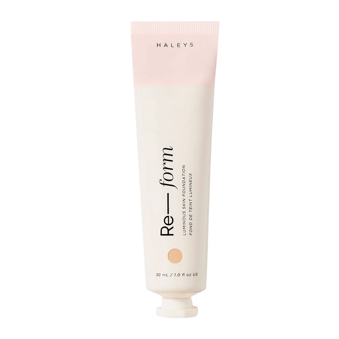 HALEYS Re-form Luminous Skin Foundation is a weightless, medium-to-buildable coverage foundation that covers imperfections and evens out skin tone, leaving a luminous second-skin finish without greasiness.