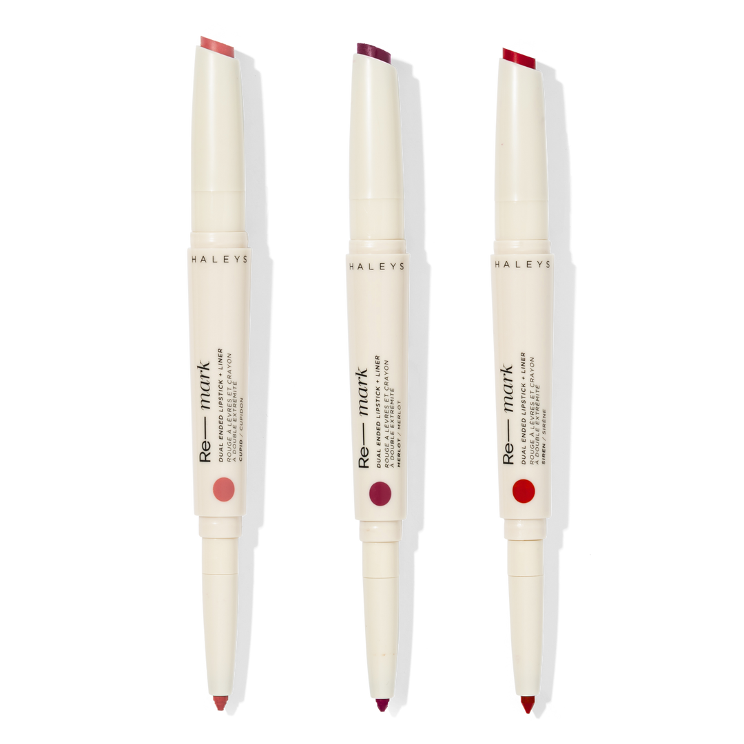 Three dual-ended lipsticks and liners designed for effortless, long-lasting lip color. This satin-matte lip duo features a precision liner and a creamy, nourishing lipstick in perfectly paired shades—just line, flip, and fill for smooth, high-impact color that stays comfortable.