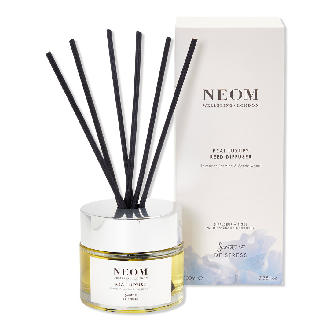 NEOM Wellbeing Real Luxury Reed Diffuser, is expertly blended with 100% natural fragrances to fill your space with continuous scent to help you relax and unwind.