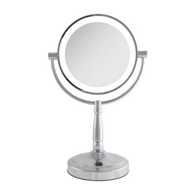 The Conair LED-Lighted Handheld Rechargeable Mirror looks very fashionable with it's brushed nickle metal tones. The mirror itself is large and well lit. But the 10x Magnification add-on needs a stronger magnet as it too easily flies off. The hand held feature is interesting if you are trying to see all angles, but isn't necessary when using it as a make-up mirror. It does not feel secure when added to the base - it just sits in the hole, it does not click into place and feels wobbly and insecure. I wouldn't recommend this product because of the unsteadiness and impracticality as a stationary makeup mirror.