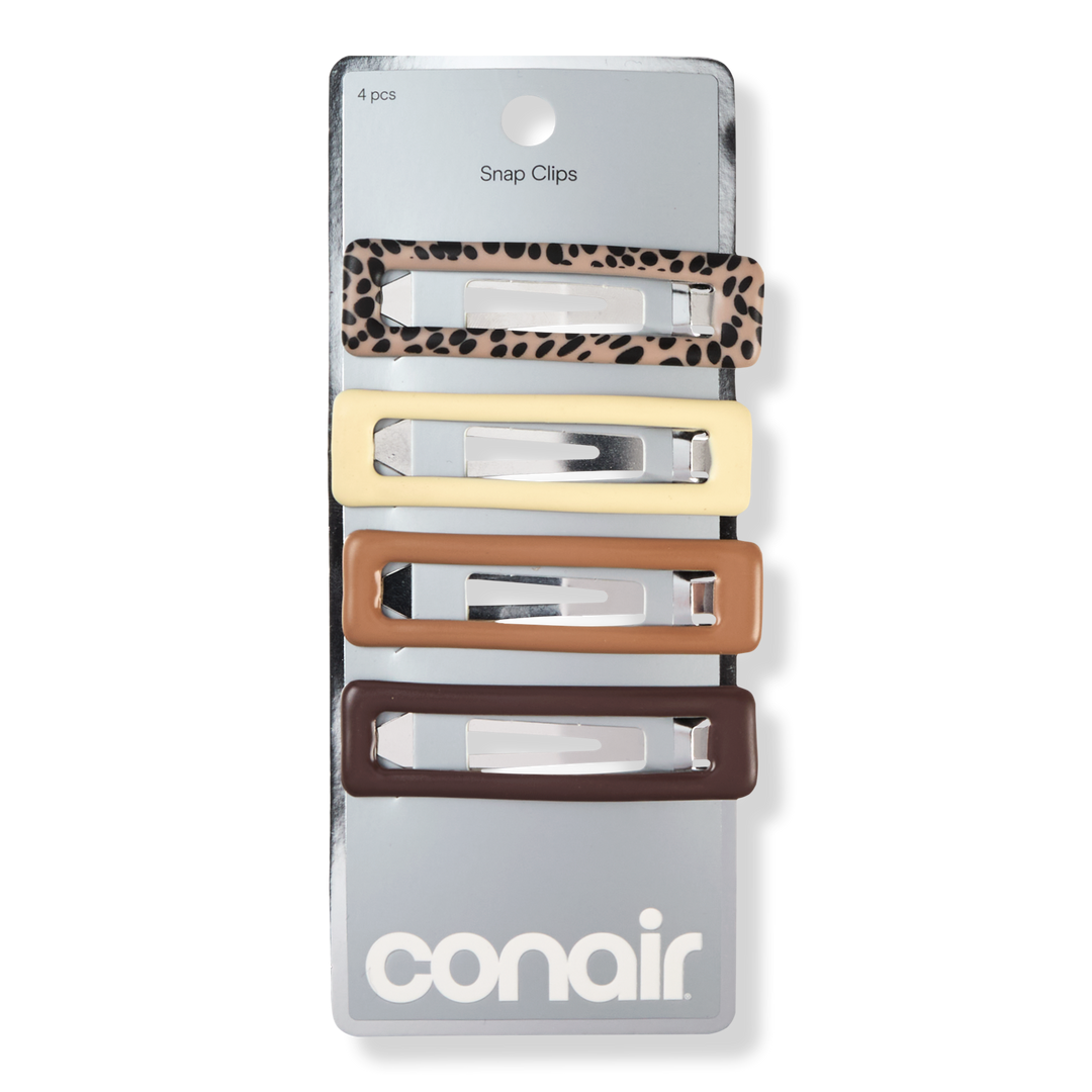 Create beautiful hairstyles in a snap with Conair Snap Clips. Stack and style this 4-pack of hold-tight barrettes in tan, brown, cream, and cheetah print for effortless looks.