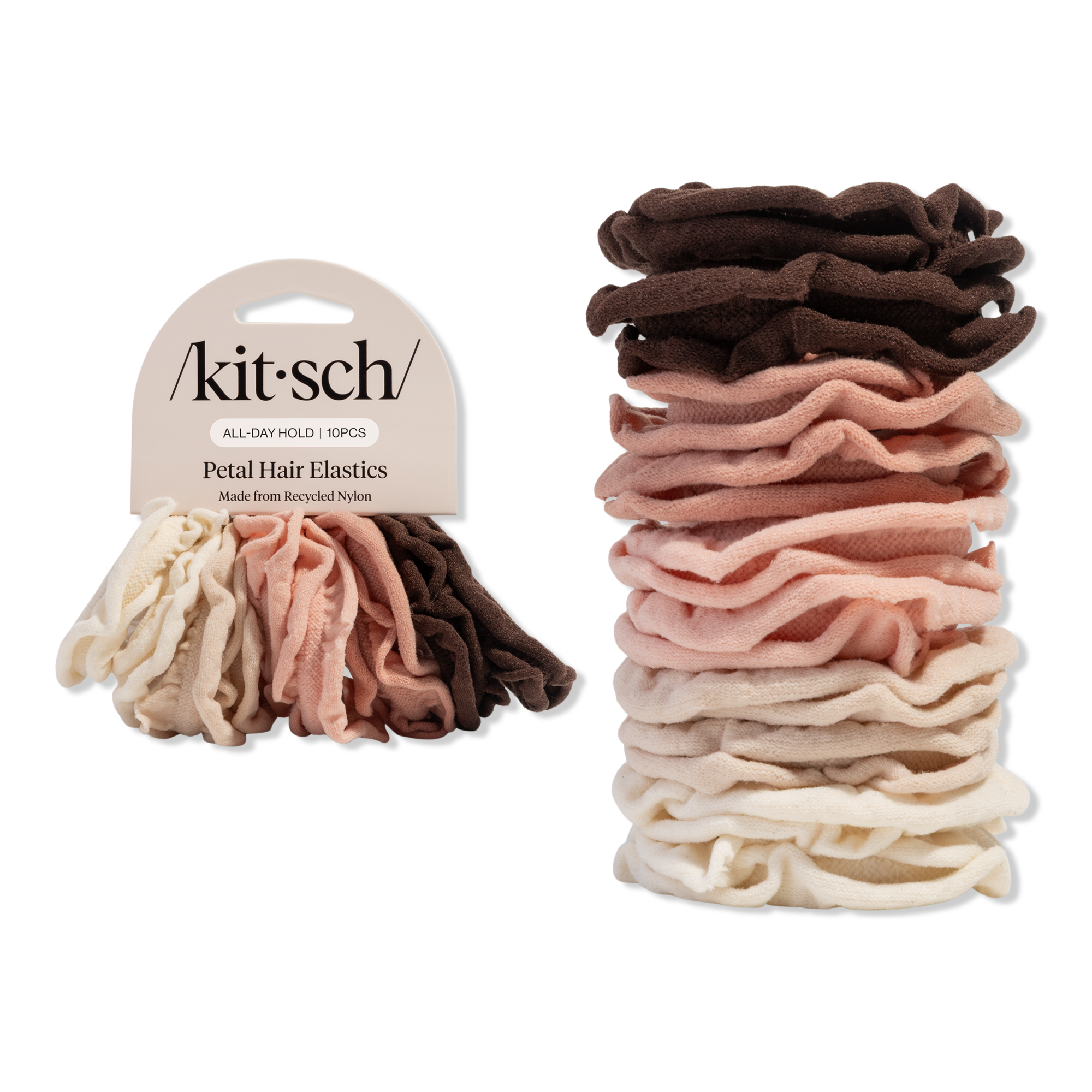 Kitsch Petal Hair Elastics 10pc Set combine chic style and comfort. Flexible, no-pull elastics hold ponytails, buns, and half-ups securely without snagging. Elegant petal-inspired design adds a polished, feminine touch to any everyday look.