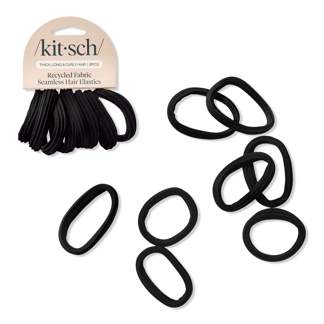 Kitsch Recycled Fabric Seamless Hair Elastics are your everyday styling essential. These elastics tie up your ponytail, bun, or half-up while being gentle on your hair. Experience the slip-free, soft comfort of these versatile black elastics, great for fine, thick, straight, and curly hair!
