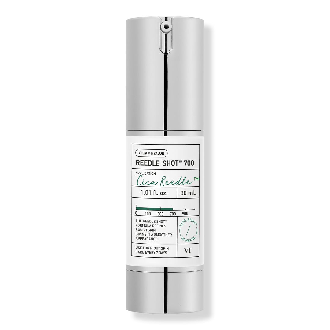 Formulated with CICA REEDLE, VT Cosmetics Reedle Shot 700 refines rough texture, supports healthy skin turnover, and leaves skin looking smoother.