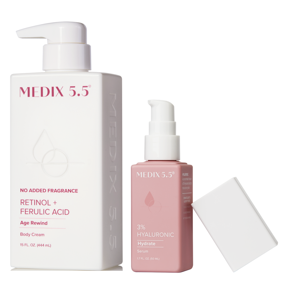 Medix 5.5Â Refine + Hydrate Duo | Fragrance Free Retinol Body Cream, 3% Hyaluronic Acid Serum