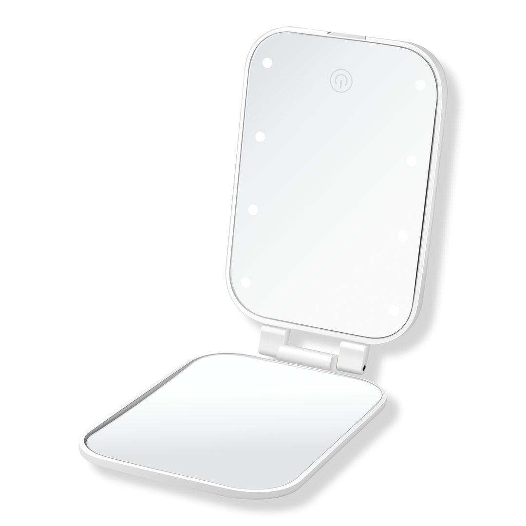 Battery-operated LED mirror with a compact design for touch-ups on the go. Fits in your purse so you can look your best anytime, anywhere.