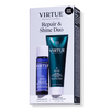 Repair & Shine Duo - Start with Damage Reverse Serum, Virtue's daily leave-in treatment that both instantly repairs hair and also protects from future harm*. Finish with Healing Oil, their everyday hair enhancer that hydrates and weightlessly adds shine.