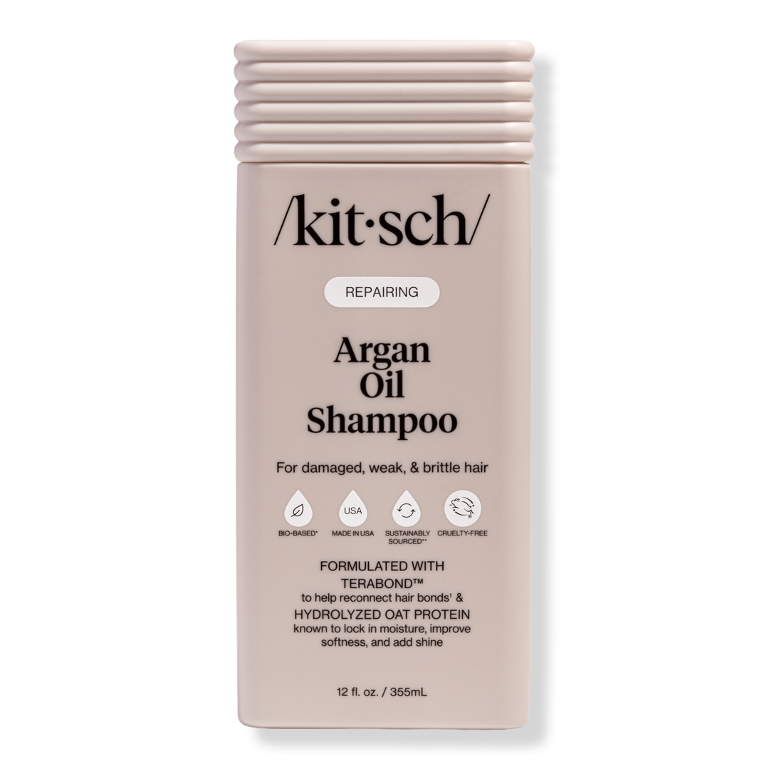 - Refresh hair with Kitsch Repairing Argan Oil Shampoo! Formulated with Terabond™ to help reconnect hair bonds, reinforce keratin structure and reduce breakage, and Hydrolyzed Oat Protein which is known to lock in moisture, improve softness and add shine. Clean & color-safe formula in PCR packaging.