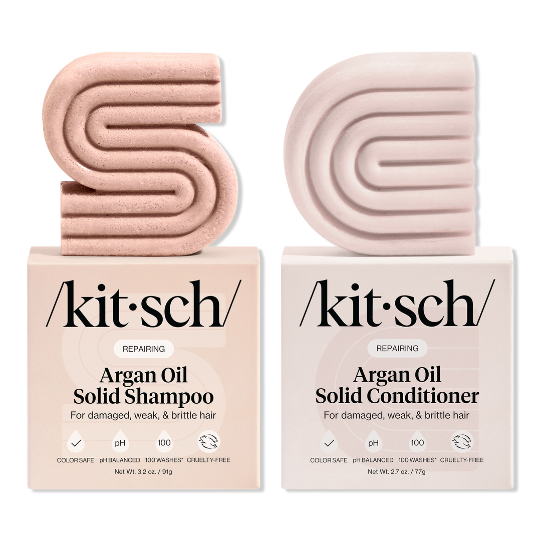 The Kitsch Repairing Argan Oil Shampoo & Conditioner moisturizes hair without weighing it down. The shampoo contains Everbond to repair damaged strands, reduce breakage, and improve elasticity. The conditioner, with PhytoVie Defense, aids in damaged hair recovery.