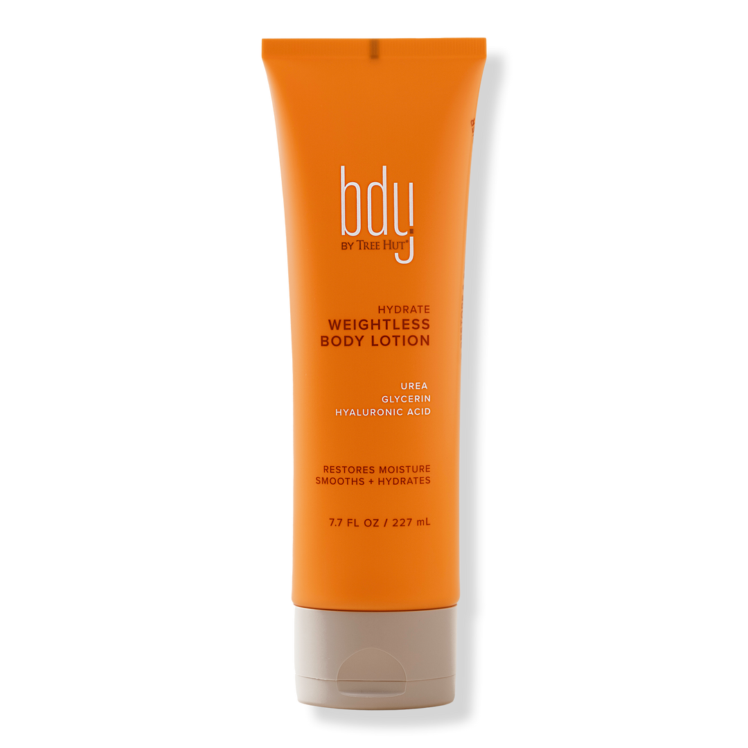 bdy. Restoring Weightless Body Lotion with Glycerin + Hyaluronic Acid absorbs quickly to help lock in moisture for glowing skin without a greasy feel.