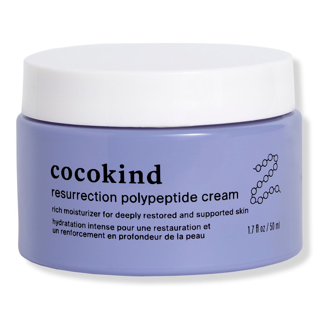 Resurrection Polypeptide Cream from cocokind instantly restores skin's moisture levels and provides increased plumpness. A dreamy cushion-like texture hugs the skin while improving radiance, supporting the skin's natural collagen and helping reduce the look of fine lines and wrinkles.