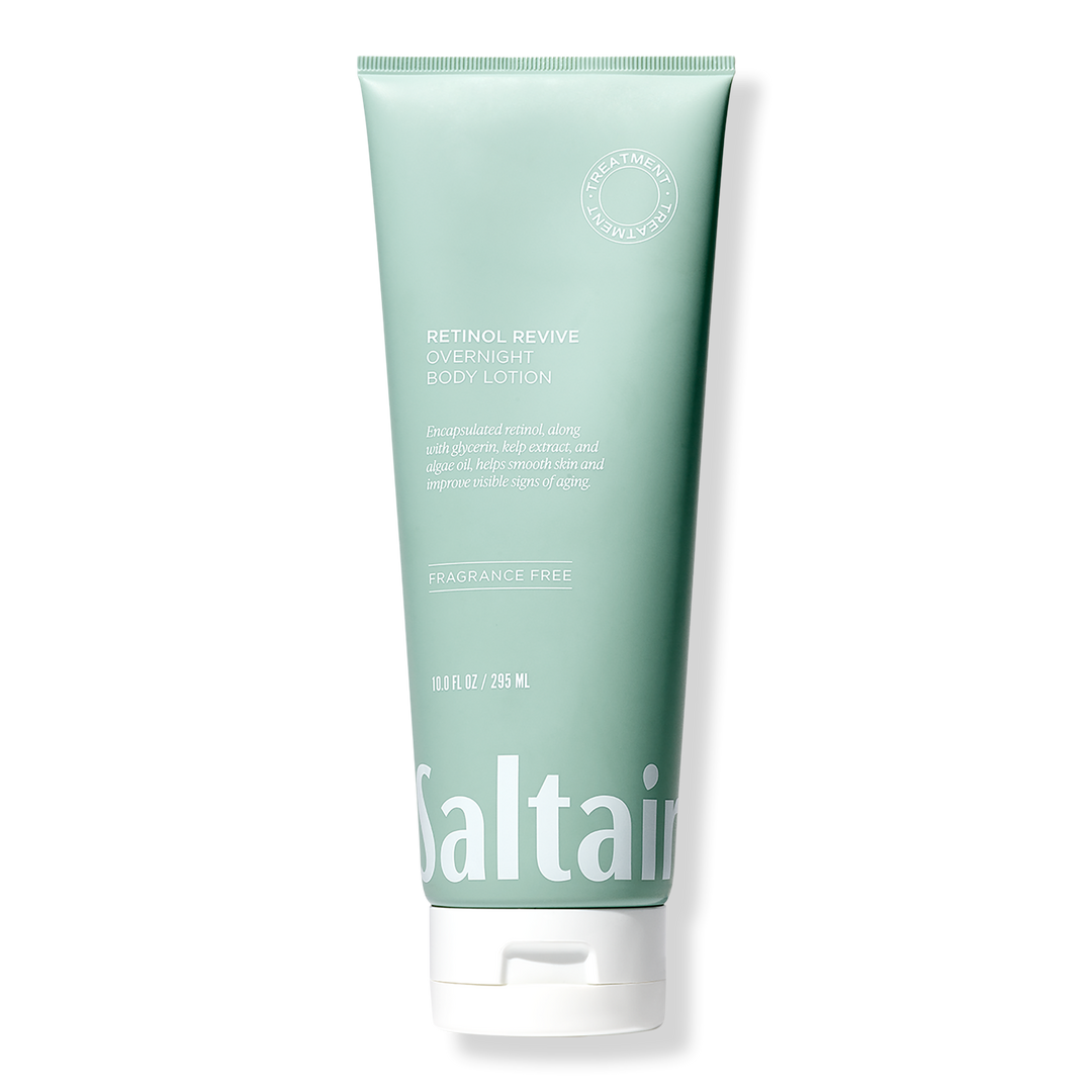Saltair Retinol Revive Overnight Body Lotion rejuvenates skin overnight—without irritation. Powered by encapsulated retinol & a blend of AHAs and 5% glycerin, it gently exfoliates and helps with cell turnover to visibly smooth skin, improve elasticity, and improve the appearance of tone and texture.