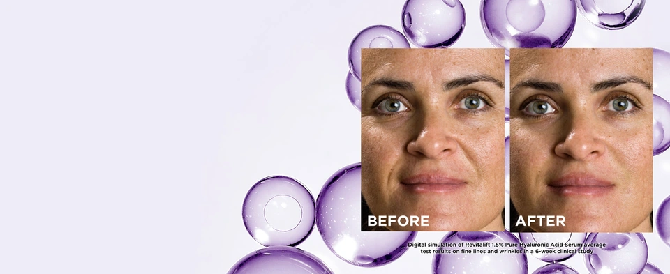 L'Oréal Revitalift Hyaluronic Acid Serum is a fragrance free 1.5% pure hyaluronic acid serum to intensely hydrated, visibly plump skin and reduce wrinkles. Validated by dermatologists.