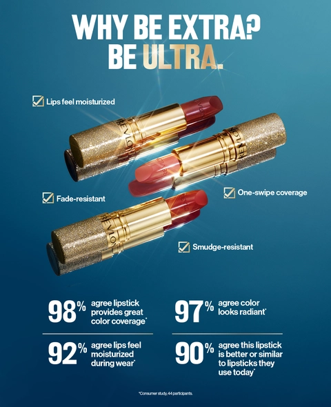 Revlon Super Lustrous Ultra Lipstick delivers ultra-rich, radiant lip color and moisture in one swipe. Only available at Ulta Beauty.