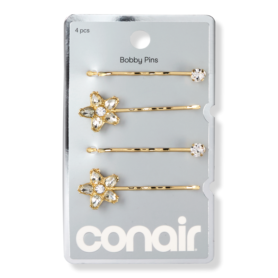 Conair gold-tone bobby pins accented with rhinestones elevate any style. These sleek slides secure hair with a lasting hold. Stack or wear them as singles