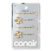 Conair gold-tone bobby pins accented with rhinestones elevate any style. These sleek slides secure hair with a lasting hold. Stack or wear them as singles