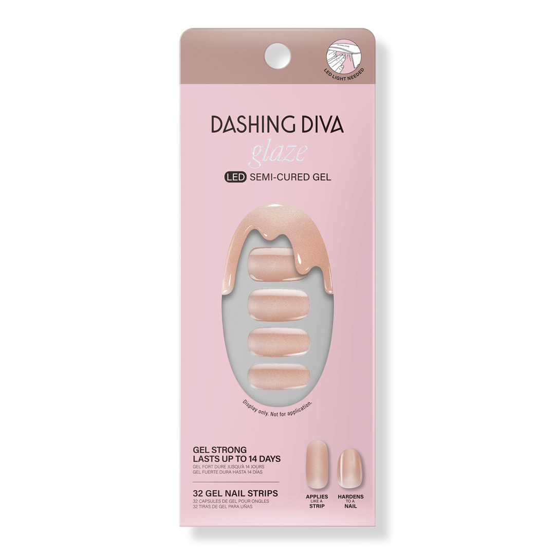 Get the pro-finish and sculpted effect of a salon gel manicure at home with ease. Dashing Diva GLAZE innovation is a semi-cured gel strip that cures under a LED lamp, delivering salon results: molded shape, mega volume, mirror shine that's gel strong for up to 14 days.