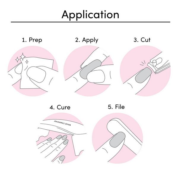 Step 1: Prep - Wash hands with soap and water. Shape nails and push back cuticles. Use enclosed Prep Pad to ensure nails are clear from oils and residue. Make sure your nails are completely dry before application.