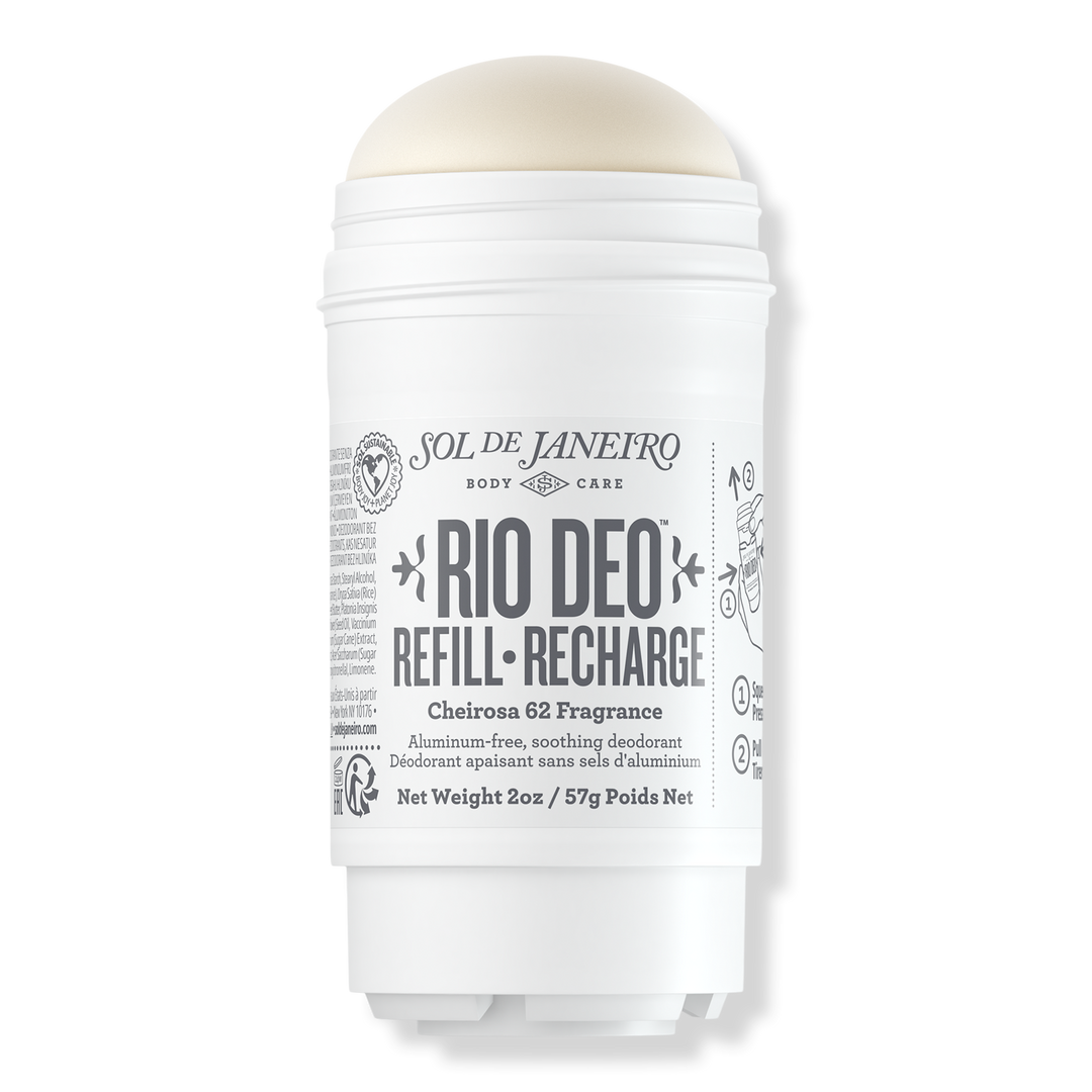 Sol de Janeiro's Rio Deo Aluminum-Free Refillable Deodorant Cheirosa 62 is an aluminum-free and baking soda-free deodorant formulated with the iconic Cheirosa 62 fragrance.