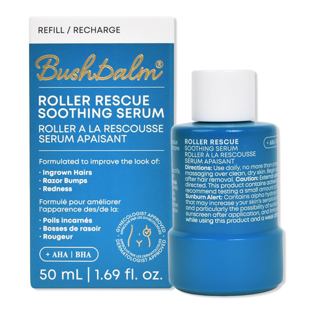 Bushbalm's Roller Rescue is a lightweight serum with AHA/BHA that gently smooths texture, helps visibly clear pores and improves the look of redness. Paired with an easy-to-use stainless steel rollerball applicator for a soothing + cooling effect, it's the perfect solution to fighting ingrown hairs.