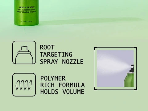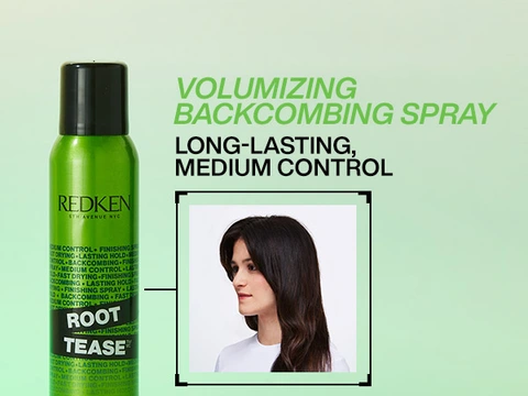Redken Root Tease Backcombing Texture Spray is a medium control hairspray providing long-lasting root lift for a teased, textured matte finish with anti-frizz control. The horizontal mist is designed to create lift at the roots. Love Quick Tease 15? Meet Root Tease.
