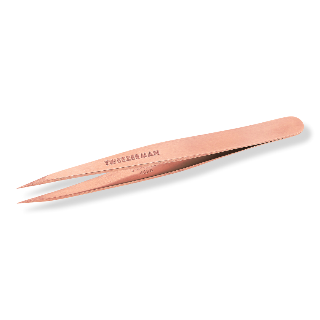 Remarkably exact precision. Finely tapered points are hand-filed and perfectly aligned, making the Rose Gold Point Tweezer by Tweezerman ideal for stubble, ingrowns, and baby-fine brow and facial hair. Meticulously pointed tips grab the finest and smallest hairs.