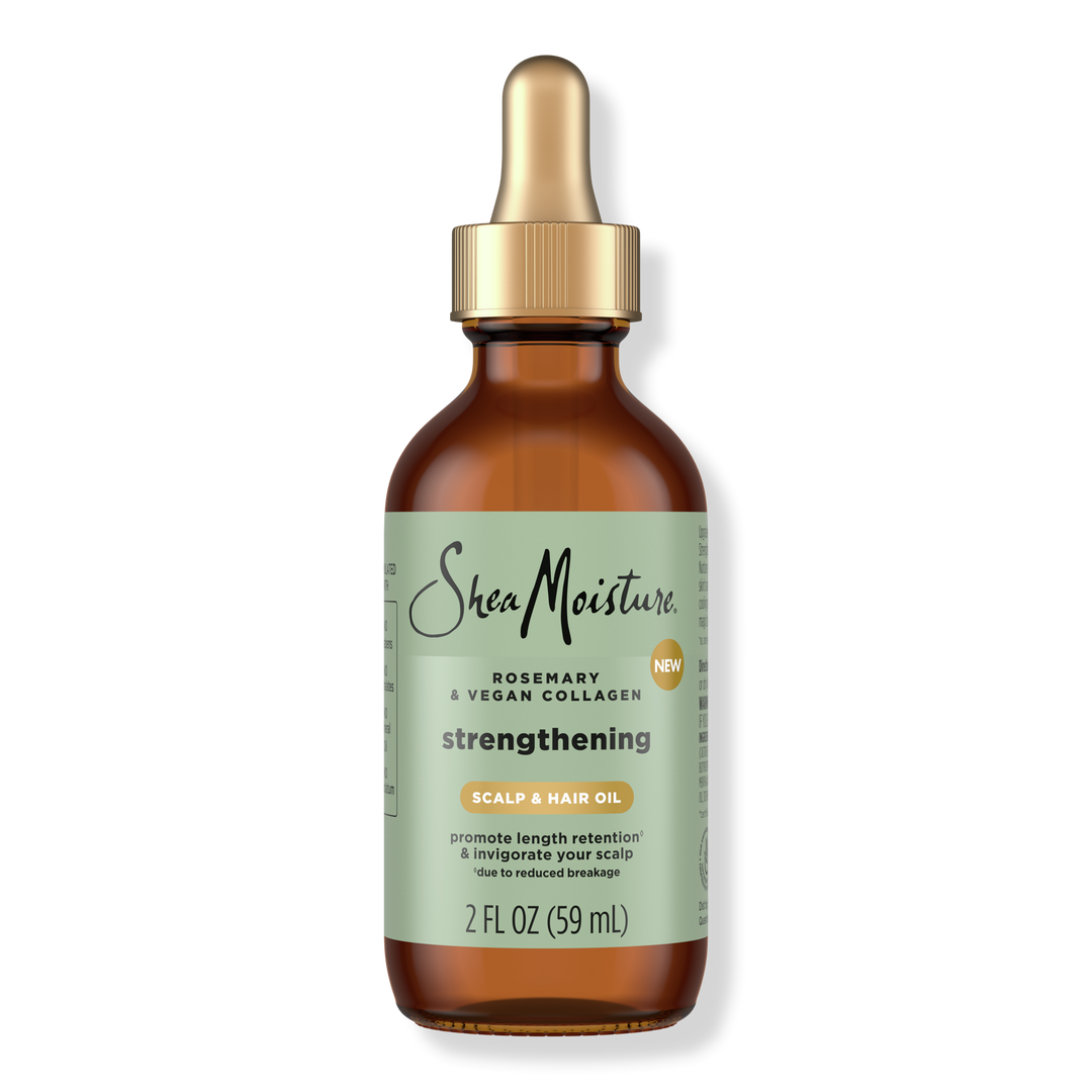SheaMoisture Rosemary & Vegan Collagen Strengthening Scalp & Hair Oil promotes hair growth, strengthens hair and provides moisture to hair and scalp. Also repairs cuticle damage.