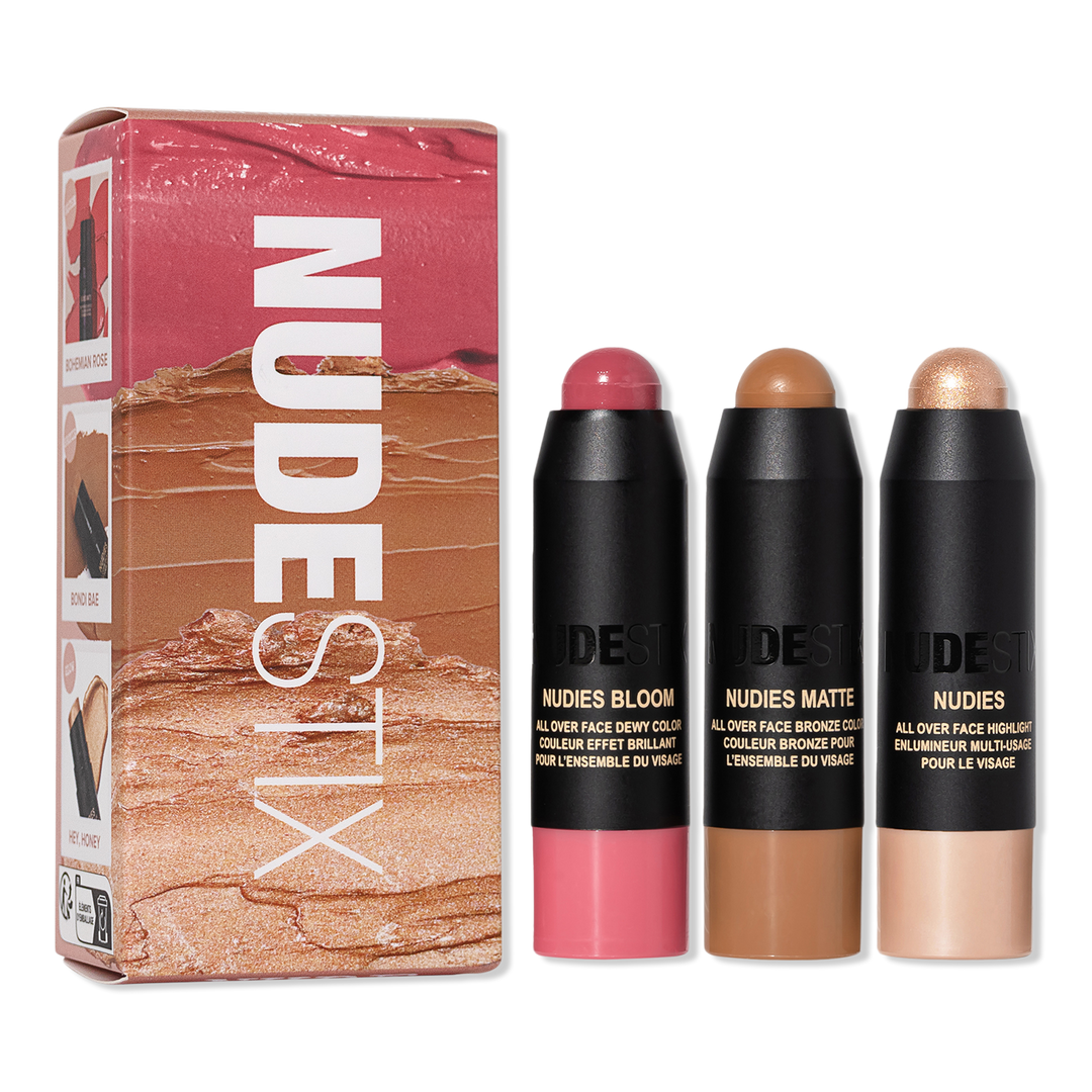 This limited-edition kit featuring NUDESTIX's best-selling, iconic NUDIES for eyes, cheeks, and lips in mini sizes. This curated collection of shades will keep your skin looking effortlessly bronzed, luminous, and fresh-faced - and all on the go!