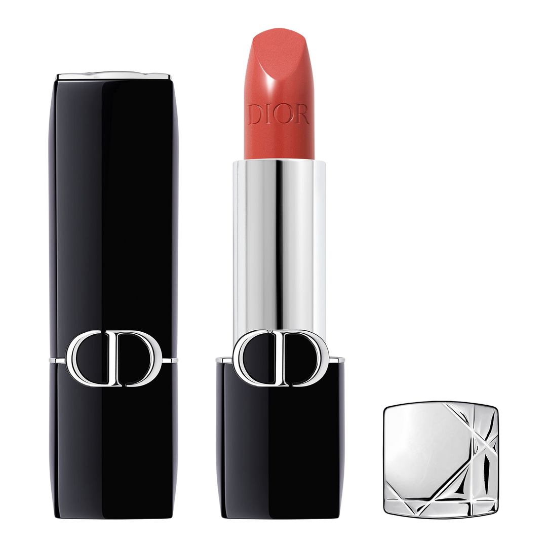 - Rouge Dior lipstick is now available in captivating, universally flattering shades in satin and velvet finishes for flawless, long-lasting wear. Wear Dior with its new sleek and magnetic, couture, refillable case, outfitted with the Christian Dior belt and silver cannage.