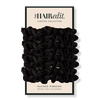 - Comes in a pack of 8 black slim satin scrunchies