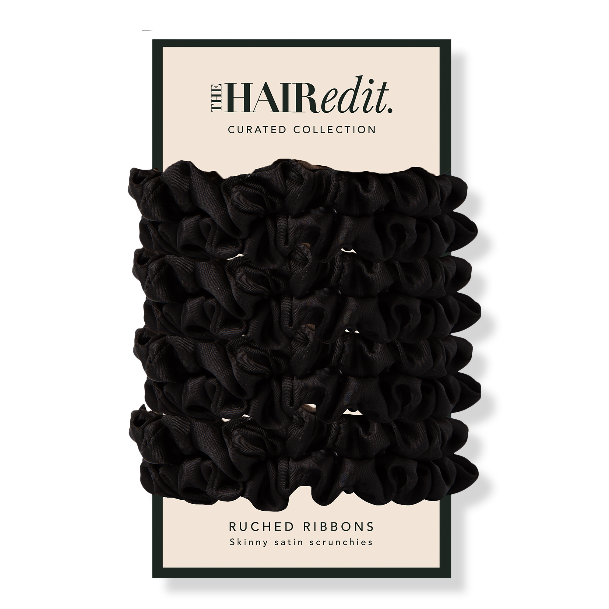 An elevated twist on the popular scrunchie, The Hair Edit's Ruched Ribbons Skinny Satin Scrunchies Set features a delicate satin finish & understated silhouette.