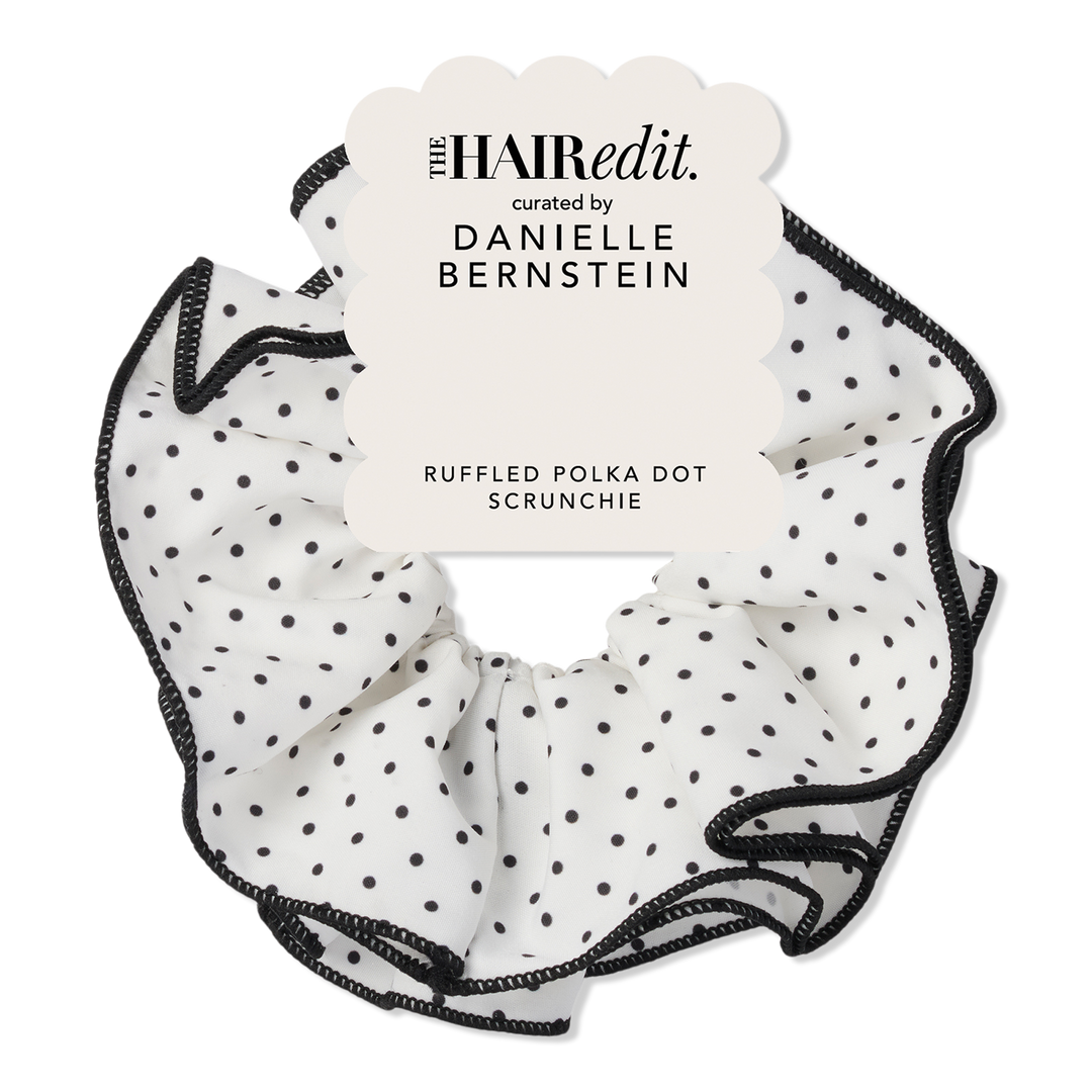 Created with Danielle Bernstein, The Hair Edit Ruffled Polka Dot Scrunchie adds feminine style with its oversized ruffled silhouette and polka dot print.