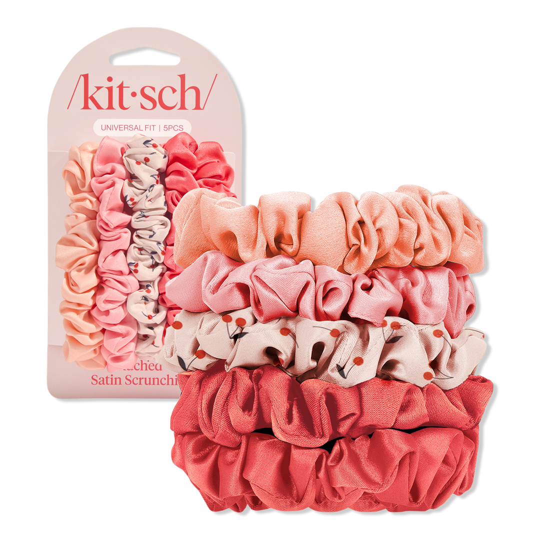 Experience ultimate comfort with Kitsch Satin Hair Scrunchies—these cute cherry-print scrunchies gently hold hair without pulling or tangling, making them perfect to wear while you snooze.