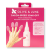 Speedy removal for your favorite salon-quality manicure or pedicure. This gentle, effective and fast removal system has everything you need to easily remove your gel polish, glitter polish, dip, or press-on nails.