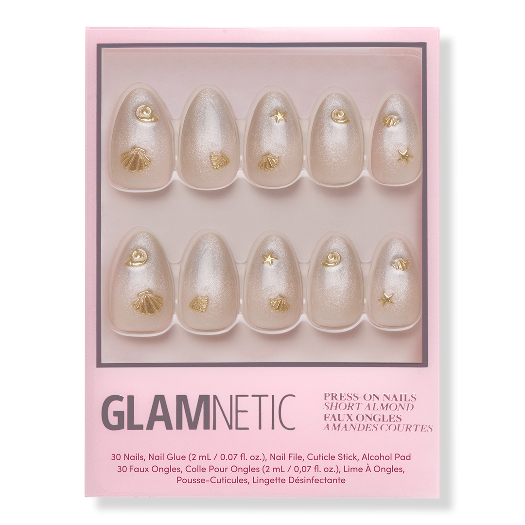 - Align Glamnetic nails with cuticle line and apply at a downward angle. Press down firmly and hold for 10-20 seconds.