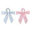 Product-obsessed. Sweet and stylish bow scrunchie duo featuring a blue and white floral print and solid pink satin. Soft, gentle on hair, and designed for a secure hold without pulling—perfect for ponytails, buns, or wrist wear.