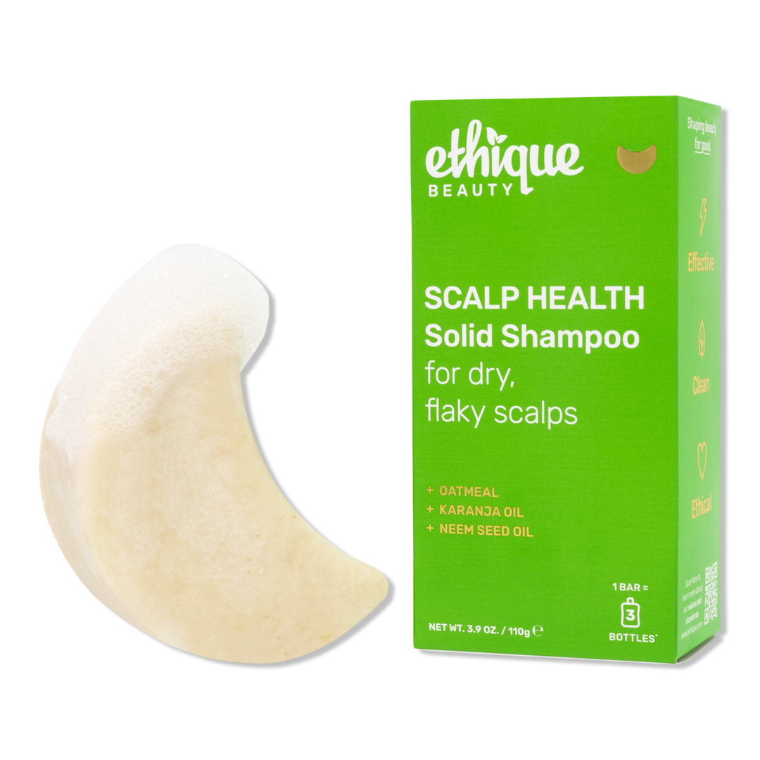 Ethique Beauty’s Scalp Health Shampoo restores hydration and rebalances dry scalps, revealing healthy-feeling, shiny hair from roots to ends. Helps reduce dry scalp flaking while leaving a refreshed, healthier-feeling scalp. Relieves with oatmeal, neem, and karanja oils.