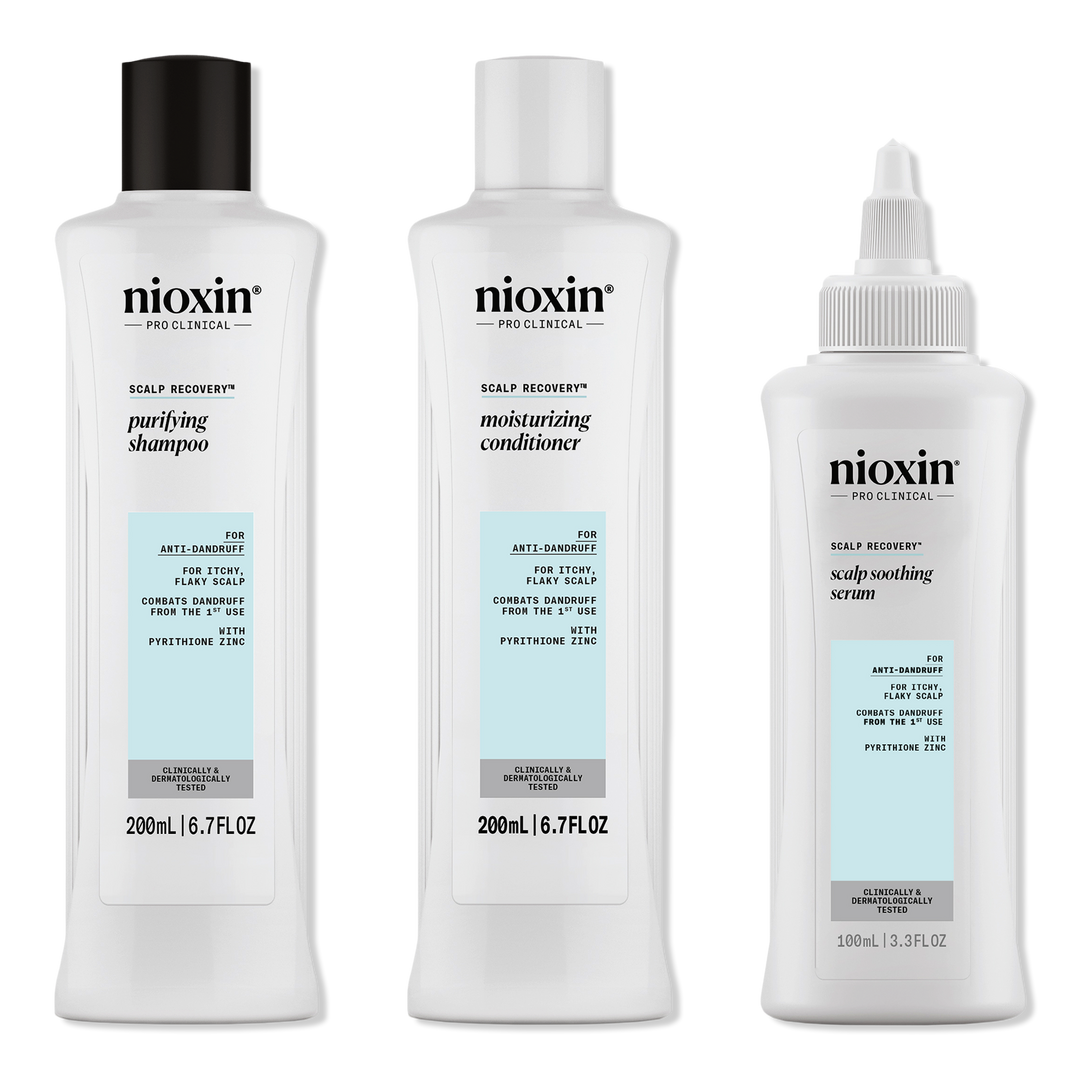 Nioxin Scalp Recovery System combats dandruff from the first use. Formulated with powerful ingredients like Pyrithione Zinc and green tea extract, the Nioxin Scalp Recovery System gently cleanses your scalp, helps to restore its natural balance and reduces hair fall associated with itching.