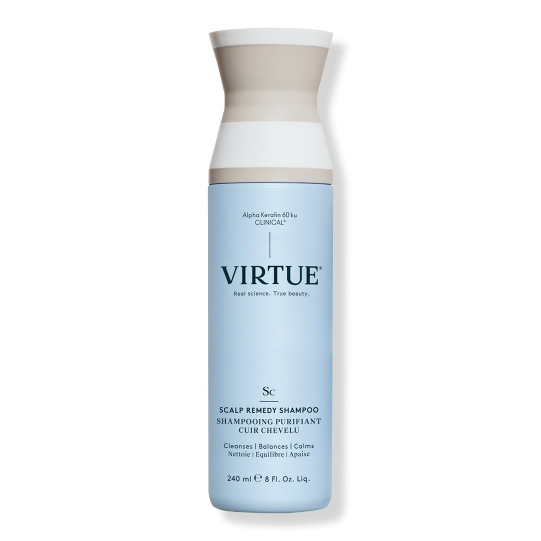Virtue's Scalp Remedy Shampoo for Scalp & Hair Health is a fragrance-free, drug-free shampoo that balances the microbiome and nourishes the scalp while gently cleansing, refreshing, and hydrating hair.