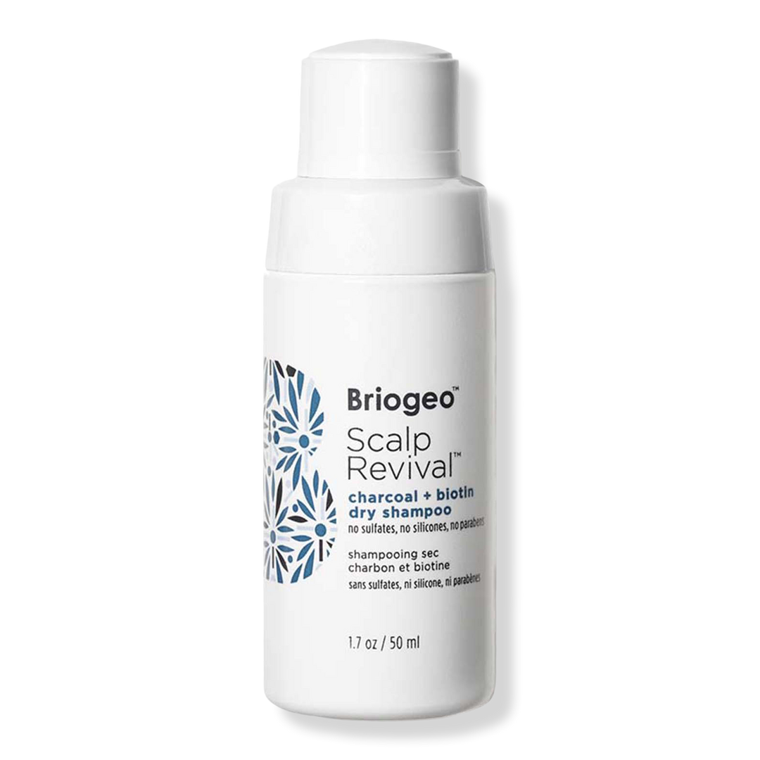 Briogeo's Scalp Revival Charcoal + Biotin Dry Shampoo is a charcoal-infused dry shampoo that detoxifies, refreshes, and balances for optimal scalp and hair health. Nature friendly, aerosol-free packaging.