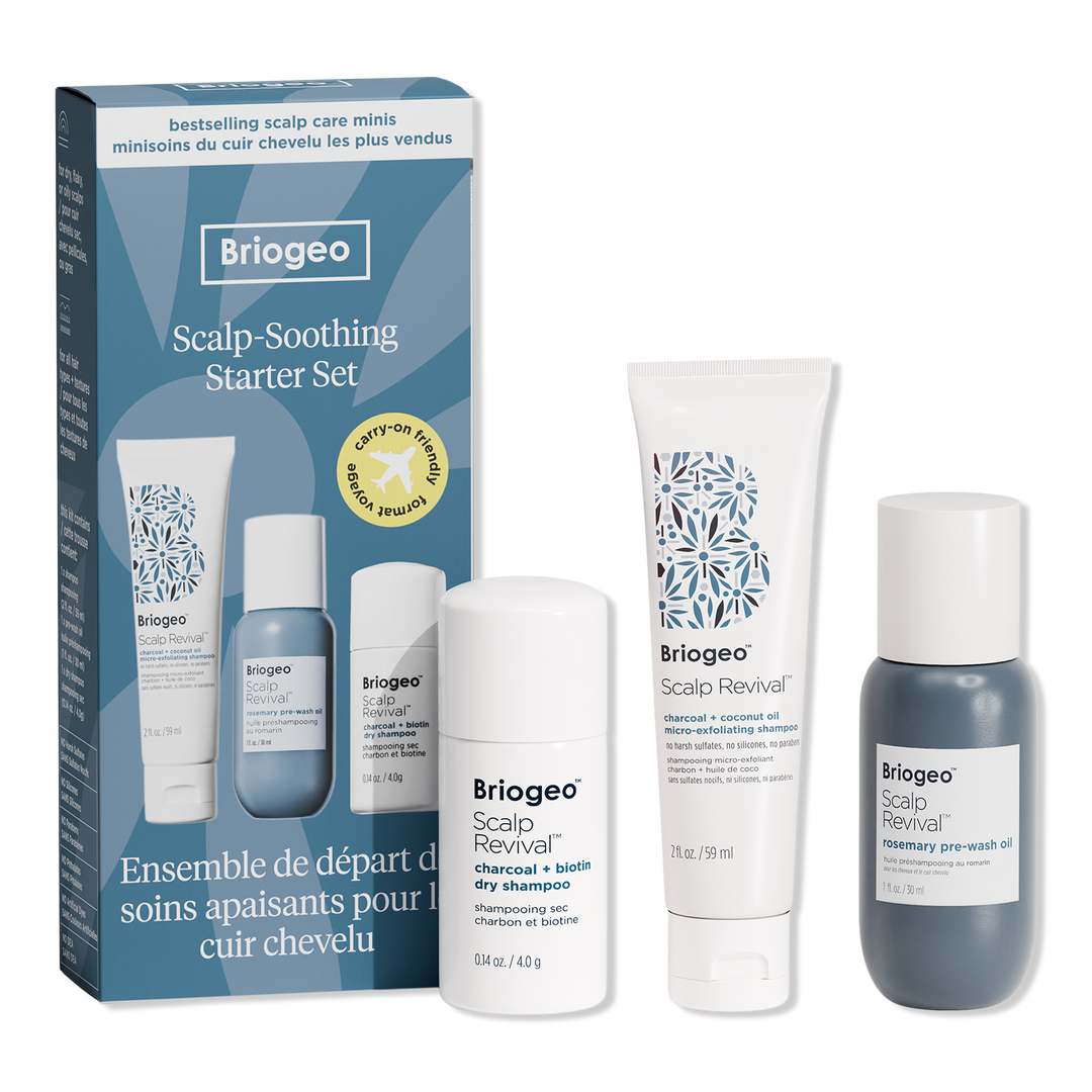 Take your scalp care to go with this travel-size Scalp Revival Scalp-Soothing Starter Set. Briogeo's #1 scrub, pre-wash oil + dry shampoo boost scalp health on wash days + every day in between.